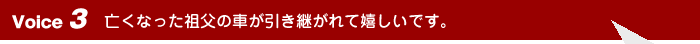 祖父と同じような年代の方がミッション車を探しておられるということで、「また祖父がミッション車に乗ってくれる。」という気持ちになりました。私もですが、きっと亡くなった祖父も喜んでいるのではないかと思います。